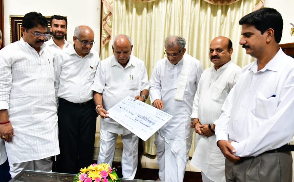 ಯಡಿಯೂರಪ್ಪ ಅವರನ್ನ ಭೇಟಿಯಾದ ಡಾ.ವೀರೇಂದ್ರ ಹೆಗ್ಗಡೆ, ಚೆಕ್ ನೀಡಿದ್ರು. ಪರಿಹಾರ ಕಾರ್ಯ ಶೀಘ್ರವಾಗಿ