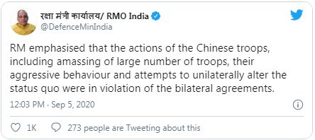 ಭೇಟಿ ಬಳಿಕ ಟ್ವೀಟರ್ನಲ್ಲಿ ಕೇಂದ್ರ ರಕ್ಷಣ ಸಚಿವ ರಾಜನಾಥ್ ಸಿಂಗ್,ಗಡಿಯಲ್ಲಿ ಚೀನಾ ಹೆಚ್ಚಿನ ಸಂಖ್ಯೆಯಲ್ಲಿ ಸೈನಿಕರನ್ನ ಜಮಾವಣೆ ಮಾಡಿದ್ದು,ಆಕ್ರಮಣಕಾರಿ ವರ್ತನೆ ಮತ್ತು ಅಶಿಸ್ತಿನ ನಡೆ ದ್ವೀಪಕ್ಷಿಯ ಒಪ್ಪಂದದ ಉಲ್ಲಂಘನೆಯಾಗಿದೆ ಎಂದು ಬರೆದಿದ್ದಾರೆ.