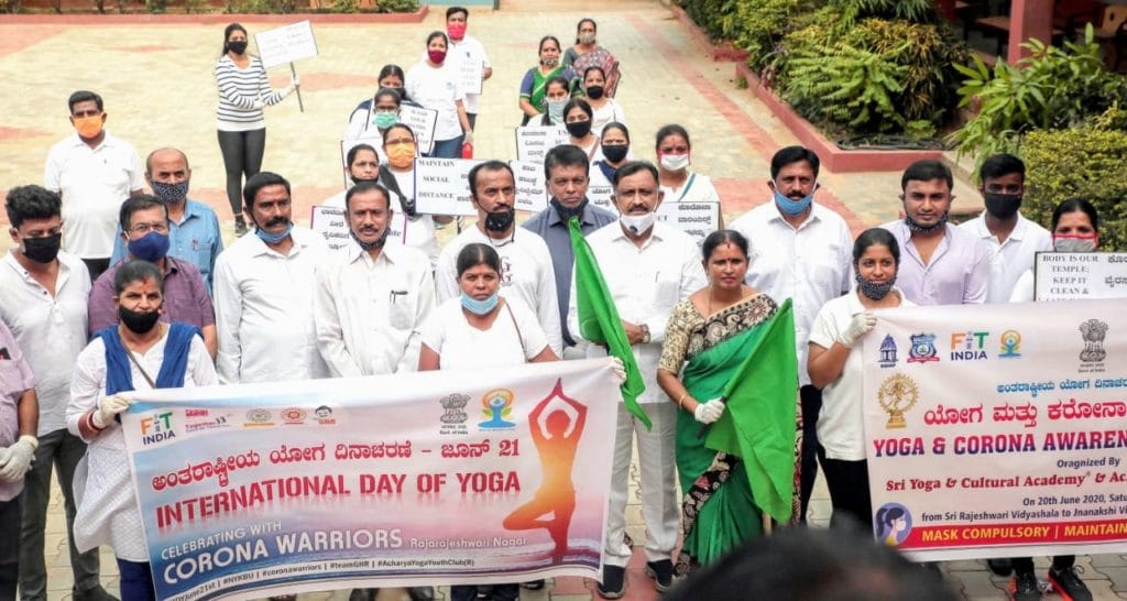 ಶ್ರೀ ಯೋಗ ಮತ್ತು ಸಾಂಸ್ಕೃತಿಕ ಅಕಾಡೆಮಿ ಮತ್ತು ಆಚಾರ್ಯ ಯೋಗ ಯೂತ್ ಕ್ಲಬ್ ಜಂಟಿಯಾಗಿ ಕೊರೋನಾ ಮತ್ತು ಯೋಗ ಜಾಗೃತಿ ಜಾಥಾ ಆಯೋಜಿಸಿತ್ತು. ಜಾಥಾದಲ್ಲಿ ಪಾಲ್ಗೊಂಡಿದ್ದ ಎಲ್ಲಾ ವಿದ್ಯಾರ್ಥಿಗಳಿಗೆ ಮೊದಲು ಟೆಂಪರೇಚರ್ ಚೆಕ್ ಮಾಡಿ, ನಂತರ ಸ್ಯಾನಿಟೈಸರ್, ಗ್ಲೌಸ್ ಹಾಗೂ ಮಾಸ್ಕ್ ಅನ್ನು ವಿತರಿಸಲಾಯಿತು.