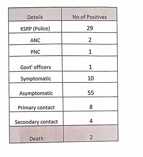 ನಗರದಲ್ಲಿ ಇಂದು ಒಂದೇ ದಿನ 69 ಪ್ರಕರಣಗಳು ವರದಿಯಾಗಿದ್ದು ಇವರಲ್ಲಿ ಬೆಂಗಳೂರಿನಿಂದ ಬಂದು ಕ್ವಾರೆಂಟೈನ್ ನಲ್ಲಿದ್ದ 25 ಜನ ಕೆ ಎಸ್ ಆರ್ ಪಿ ಪೊಲೀಸರು, 4 ಜನ ಸಿವಿಲ್ ಪೊಲೀಸರು ಸೇರಿದಂತೆ 29 ಜನ ಪೊಲೀಸರಿಗೆ ಇಂದು ಕೊರೊನಾ ಪಾಸಿಟಿವ್ ಬಂದಿದೆ.