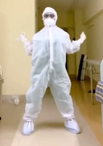 ಪಿಪಿಇ ಕಿಟ್ ಧರಿಸಿ ಸೋಂಕಿತರಿಗಾಗಿ ಡ್ಯಾನ್ಸ್ ಮಾಡಿ ಜಾಗೃತಿ ಮೂಡಿಸಿದ ವೈದ್ಯೆ