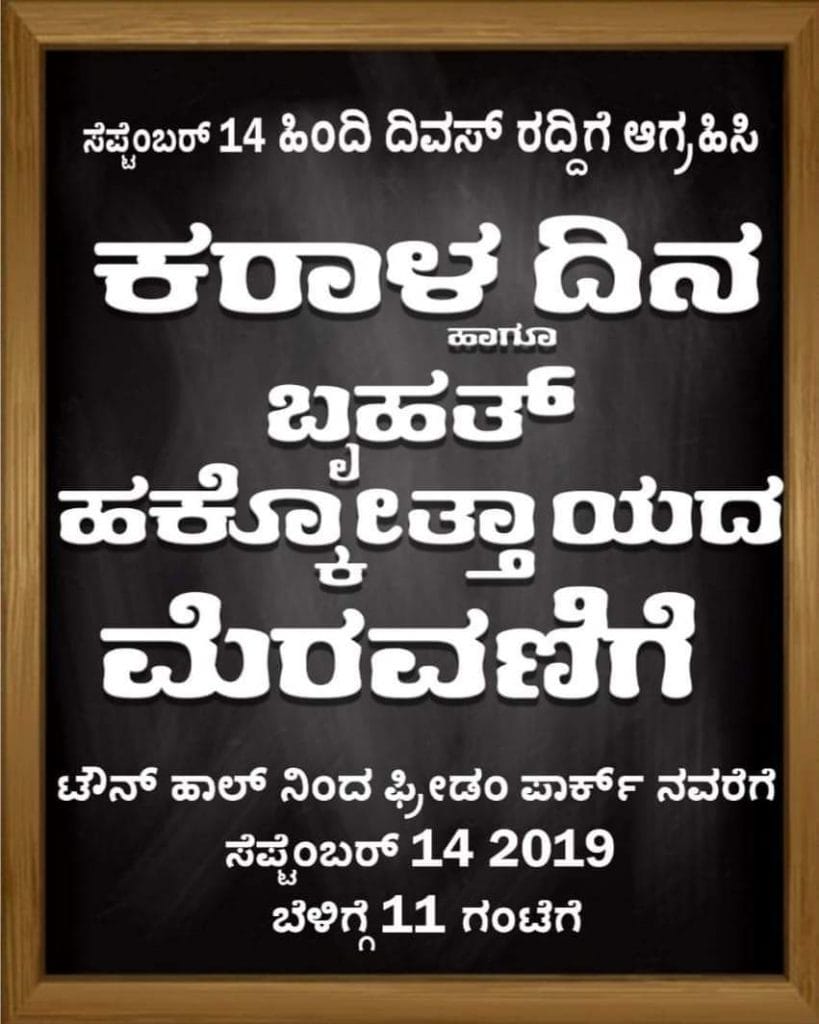 ಇನ್ನು ಕನ್ನಡದ ಮೇಲಿನ ದಬ್ಬಾಳಿಕೆ ವಿರೋಧಿಸಿ ಸೆ.೧೪ರಂದು ಟೌನ್‌ಹಾಲ್‌ನಿಂದ ಫ್ರೀಢಂಪಾರ್ಕ್‌ ವರೆಗೆ ಮೆರವಣಿಗೆ ಆಯೋಜಿಸುವುದಾಗಿ ಕನ್ನಡಪರ ಸಂಘಟನೆಗಳು ಹೇಳಿದ್ದು, ಅಂದು ಹ್ಯಾಷ್‌ಟ್ಯಾಗ್‌ ಮೂಲಕ ಟ್ವಿಟ್ಟರ್‌ ಟ್ರೆಂಡ್‌ ಮಾಡಲು ಮನವಿ ಮಾಡಿಕೊಳ್ಳಲಾಗಿದೆ.