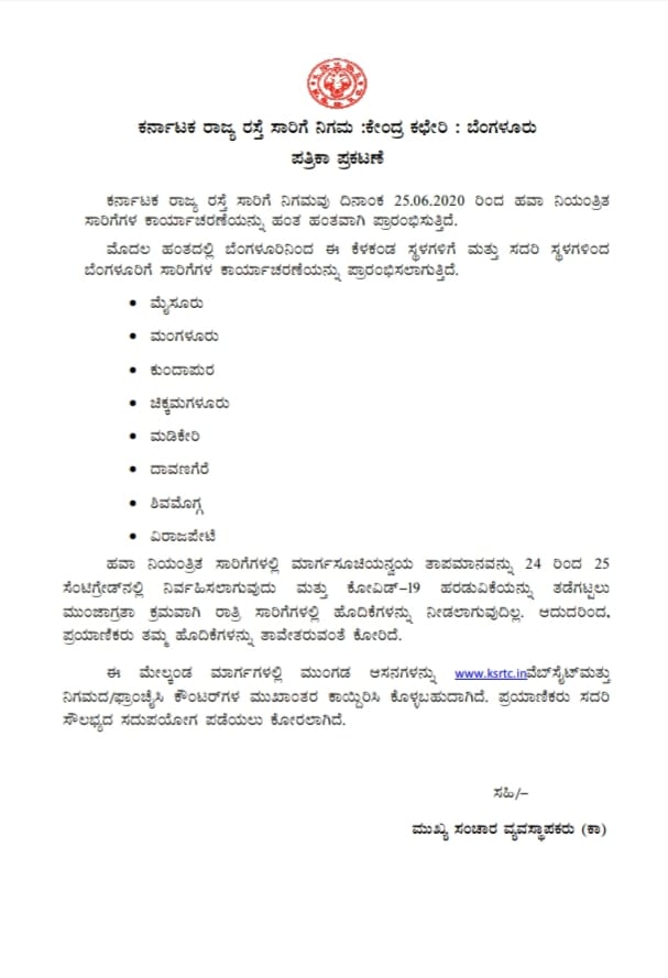 ಕೊರೊನಾ ಆತಂಕದ ನಡುವೆಯೂ ಎಸಿ ಬಸ್ಗಳ ಸಂಚಾರಕ್ಕೆ ಸಿದ್ಧವಾದ KSRTC..! – ನಾಳೆಯಿಂದಲೇ ಸಂಚಾರ ಆರಂಭ..!