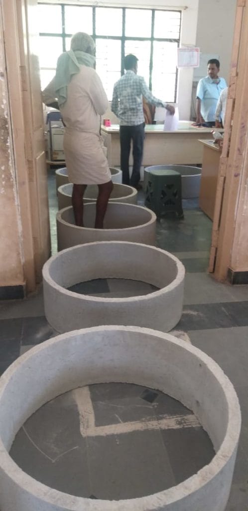 ಕಚೇರಿಯೊಳಗೆ ಎತ್ತರದ ಸಿಮೆಂಟ್ ರಿಂಗ್ ಹಾಕಿಸಿ ಜನರನ್ನು ಆ ರಿಂಗ್ನೊಳಗೆ ನಿಲ್ಲಲು ಸೂಚಿಸಿ, ಸಾಮಾಜಿಕ ಅಂತರ ಕಾಯ್ದುಕೊಂಡ ಖುಷಿಯಲ್ಲಿ ಕೆಲಸ ಮಾಡಲಾಗುತ್ತಿತ್ತು. ಆದರೆ ವಯಸ್ಸಾದವರು, ಅಂಗವಿಕಲರು ಈ ರಿಂಗ್ನೊಳಗಡೆ ನಿಂತು ಆಯತಪ್ಪಿ ಬಿದ್ದು ಗಾಯಗೊಂಡದ್ದೇ ಹೆಚ್ಚು.