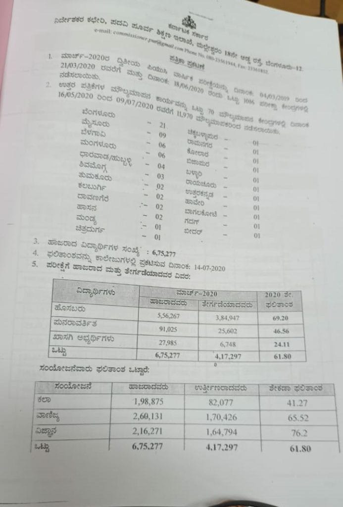 ದ್ವಿತೀಯ ಪಿಯುಸಿ ಫಲಿತಾಂಶ – ಈ ಬಾರಿಯೂ ಬಾಲಕಿಯರದ್ದೇ ಮೇಲುಗೈ – ಉಡುಪಿ, ದಕ್ಷಿಣ ಕನ್ನಡಕ್ಕೆ ಪ್ರಥಮ ಸ್ಥಾನ – ವಿಜಯಪುರ, ರಾಯಚೂರಿಗೆ ಕೊನೆ ಸ್ಥಾನ