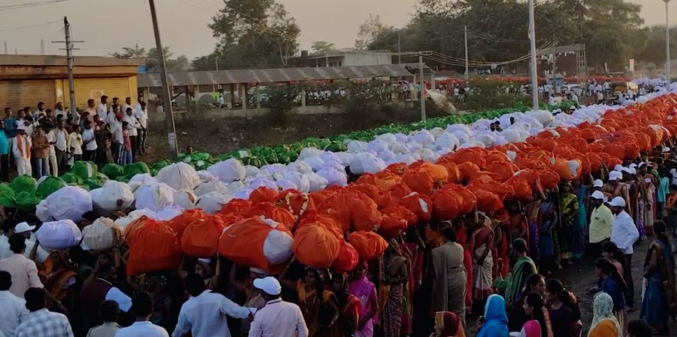 ಬಣ್ಣ ಬಣ್ಣದ ಸೀರೆ, ಮಹಿಳೆಯರ ಭವ್ಯ ಮೆರವಣಿಗೆ. ಕಣ್ಣಾಯಿಸಿದಷ್ಟು ದೂರ ಜನಸಾಗರ… ಎಲ್ಲರ ತಲೆಯ ಮೇಲೊಂದು ಬಿಳಿ ಬಣ್ಣದ ಮೂಟೆ… ಇದರ ಜೊತೆ ಜೊತೆಗೆ ದೇವರ ನಾಮಸ್ಮರಣೆ…. ಅರ್ರೆ ಇದೆನಪ್ಪಾ, ಎಲ್ರು ತಲೆ ಮೇಲೆ ಮೂಟೆ ಇಟ್ಕೊಂಡು ಬರ್ತಿದ್ದಾರೆ….ಏನಿದು ಅಂತ ನೋಡುದ್ರೆ, ಇಂತಹ ವಿಭಿನ್ನ ಕಾರ್ಯಕ್ಕೆ ಸಾಕ್ಷಿ ಆಗಿದ್ದು ಬೆಳಗಾವಿ ಜಿಲ್ಲೆ ರಾಯಬಾಗ ತಾಲೂಕಿನ ಮುಗಳಖೋಡದಲ್ಲಿರುವ ಜಿಡಗಾ ಮಠ…..